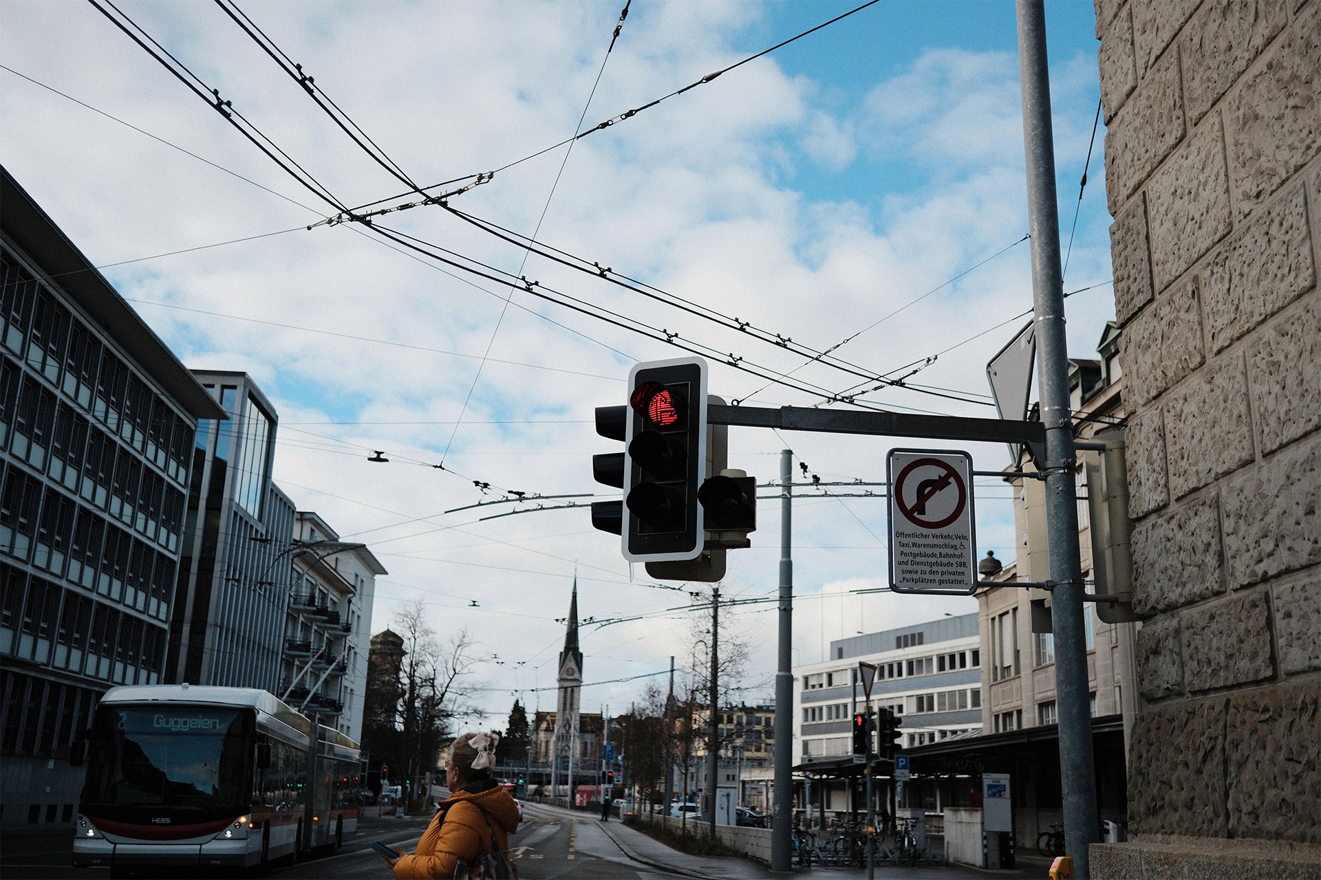 Die folgenden Szenen sollen dementsprechend symbolisch auf dem Weg von mir zur ZHdK stattfinden und erneut die verschiedenen alltäglichen Punkte symbolisieren. Hier fand ich passenderweise die Themen Kreispunkt, Haltepunkt, Standpunkt und Treffpunkt. Diese Themen sind zum einen wortwörtliche Darstellungen wie zum Beispiel beim Treffpunkt und dem Haltepunkt, gleichzeitig wollte ich aber zum Beispiel den Standpunkt so darstellen, dass es um den räumlichen und nicht den persönlichen Standpunkt geht. Damit möchte ich die Vielfalt des Wortes “Punkt” erneut verdeutlichen.