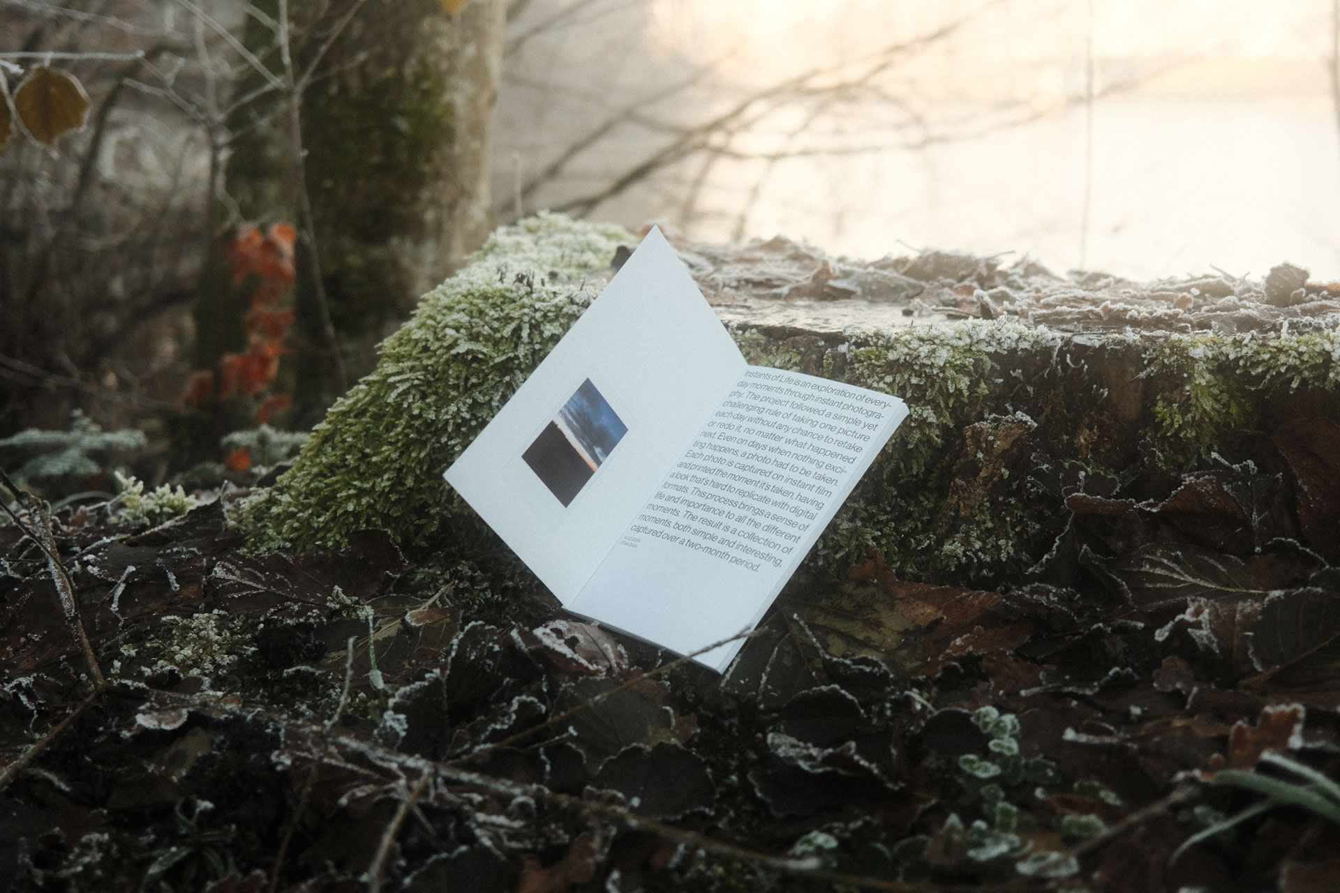 “Instants Of Life” war eine Idee von mir, alltägliche Momente mit Sofortbildern festzuhalten. Eine grosse Inspiration für das Projekt war die App “BeReal”. Daraus entstand das Konzept, jeden Tag ein einziges Foto zu machen - mit der Herausforderung, dass nach der ersten Aufnahme kein weiteres Bild gemacht werden darf. Final sollte ein Buch gestaltet werden, das alle Bilder erneut zusammenfasst und chronologisch anordnet.